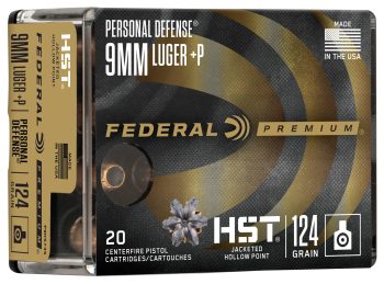 Federal Premium Personal Defense 9mm +P 124GR HST JHP, 20-Rounds, Brass
