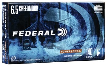 Federal Power-Shok 6.5 Creedmoor 140 gr Jacketed Soft Point, 20 Rounds, Brass