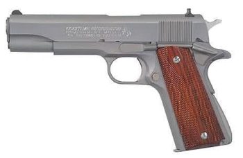 Colt 1911 Government 45 ACP 5″ Stainless National Match Barrel Rosewood Grip